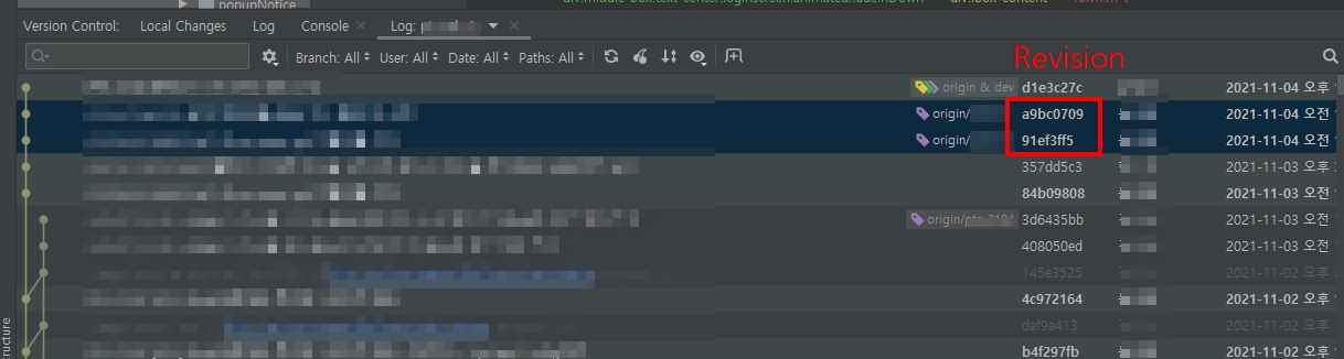 혹은 Revision을 확인 한 뒤 git cherry-pick {oldest-commit}^..{latest-commit} 명령어로 가져올 수 있습니다.