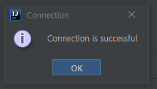 [Connection is successful] 문구가 보이면 연동 완료이므로 [OK] 버튼을 클릭하여 설정을 마칩니다.