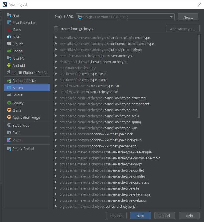 Maven을 클릭한다. Project SDK는 jdk1.8을 사용한다.