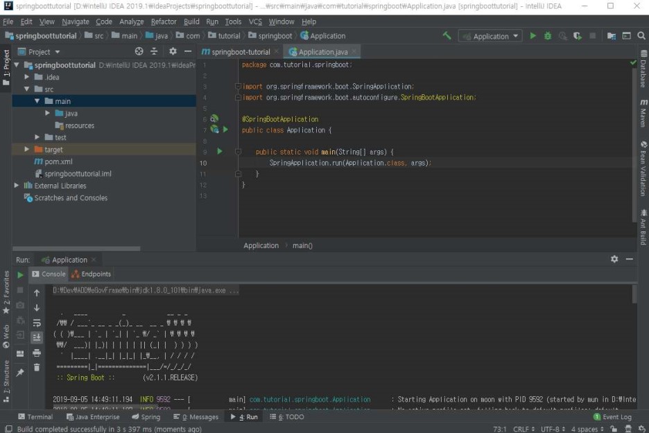 @SpringBootApplication 클래스의 적정 위치는 default pakage(위에서는 com.tutorial.springboot)에 위치하는 것이 좋다.