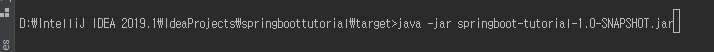 생성된 스프링 부트 jar 파일을 실행하면 스프링 부트가 실행되는 것을 볼 수 있다.