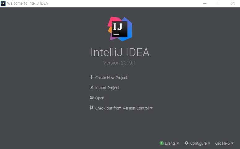 인텔리제이를 설치 후 실행하면 아래 화면이 뜬다. Create New Project를 클릭하자. (혹은 Tool바의 File > New > Projcet)
