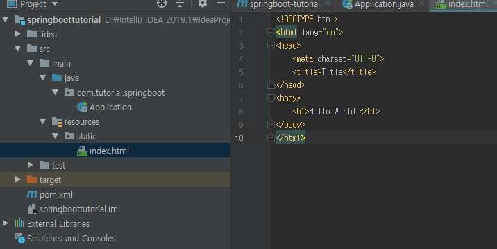 src/main/resource/static 밑에 index.html 파일을 추가해준다.