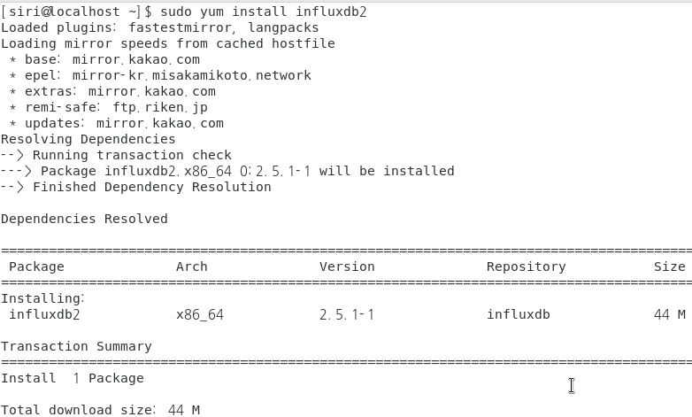 그다음엔 yum으로 influxdb 패키지를 설치합니다.