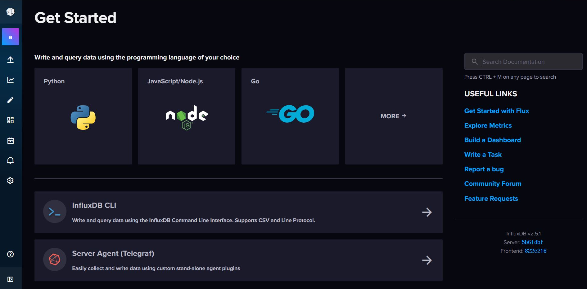 그냥 influxdb 패키지를 install 하면 1.x 버전으로 설치가 되고, influxdb2 패키지로 install 하면 2.x 버전이 설치가 됩니다. influxDB 버전 1.x과 2.x의 큰 차이는 UI 존재 여부와 쿼리입니다. 1.x에서 지원하던 influxql이 2.x에서는 지원하지 않고, Database라고 하던 게 Bucket으로 바뀌었습니다.