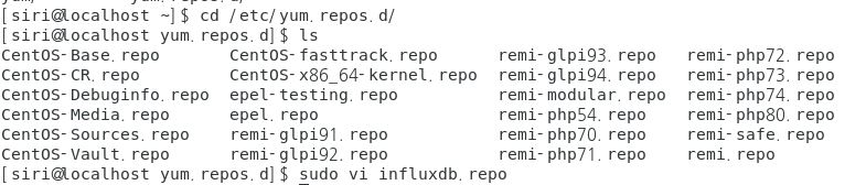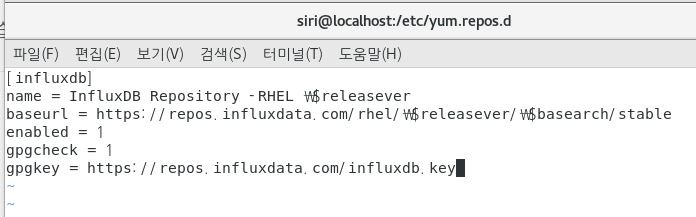 우선 /etc/yum.repos.d/ 경로에 influxdb.repo 파일을 생성합니다.
