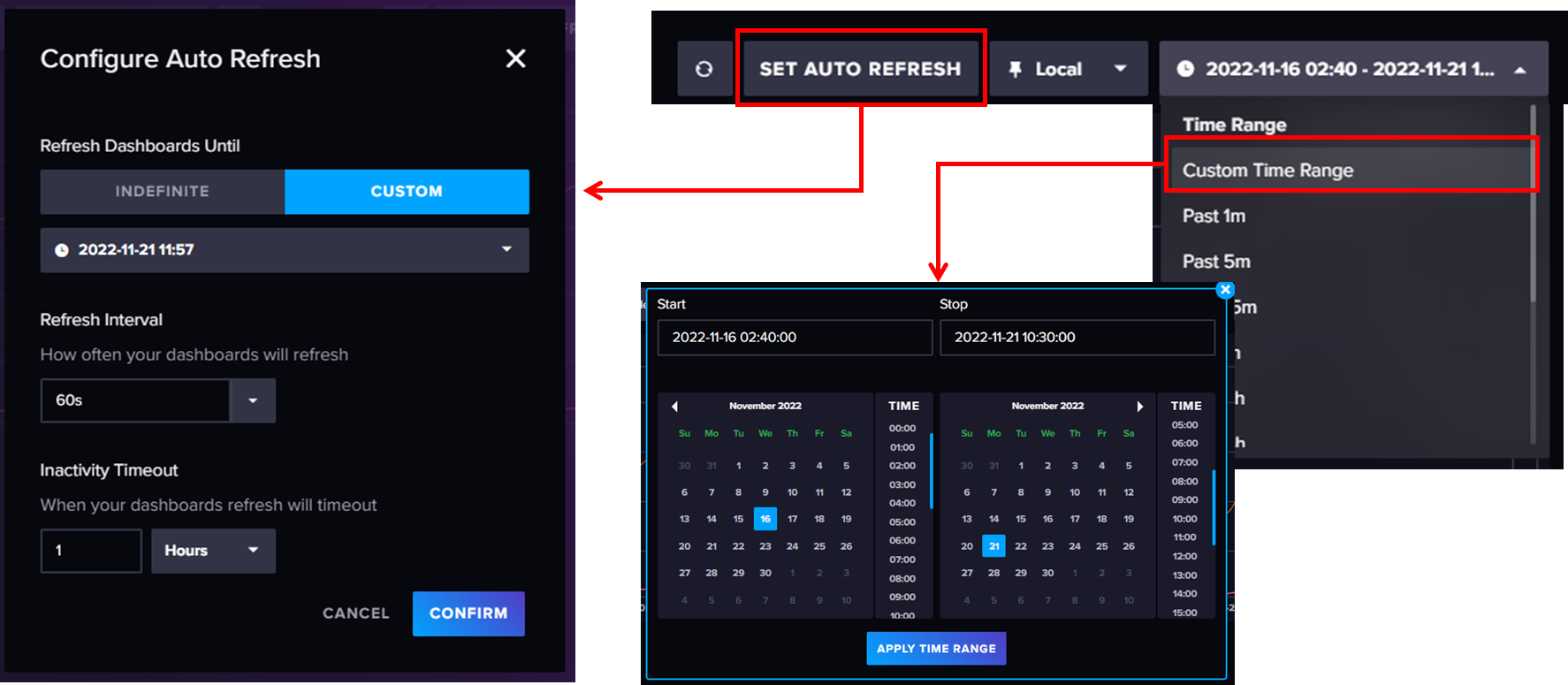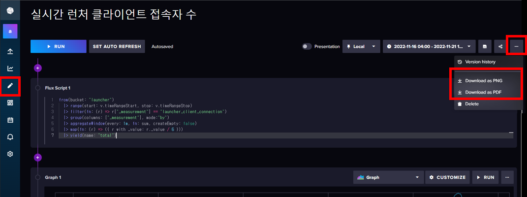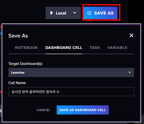 [SUBMIT] 버튼을 누르면 차트가 그려지고, Dashboard에 저장하여 손쉽게 실시간 데이터를 확인할 수 있습니다.