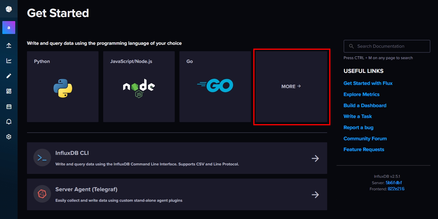 우선 influxDB의 UI에 접근합니다. (http://localhost:8086/)