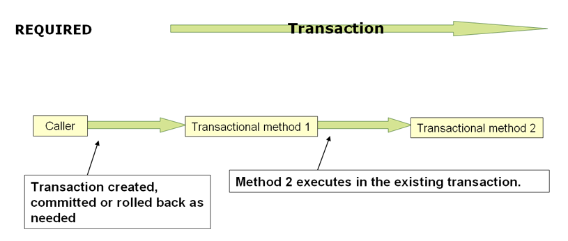 - @Transactional 의 propagation 기본 속성이 REQUIRED 이기 때문
