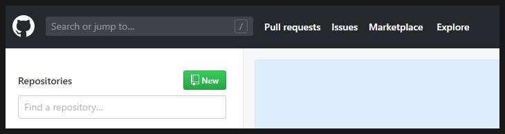 2. 좌측상단에 Repositories 옆에있는 [New]버튼을 클릭하여 새로운 레파지토리를 생성합니다.
