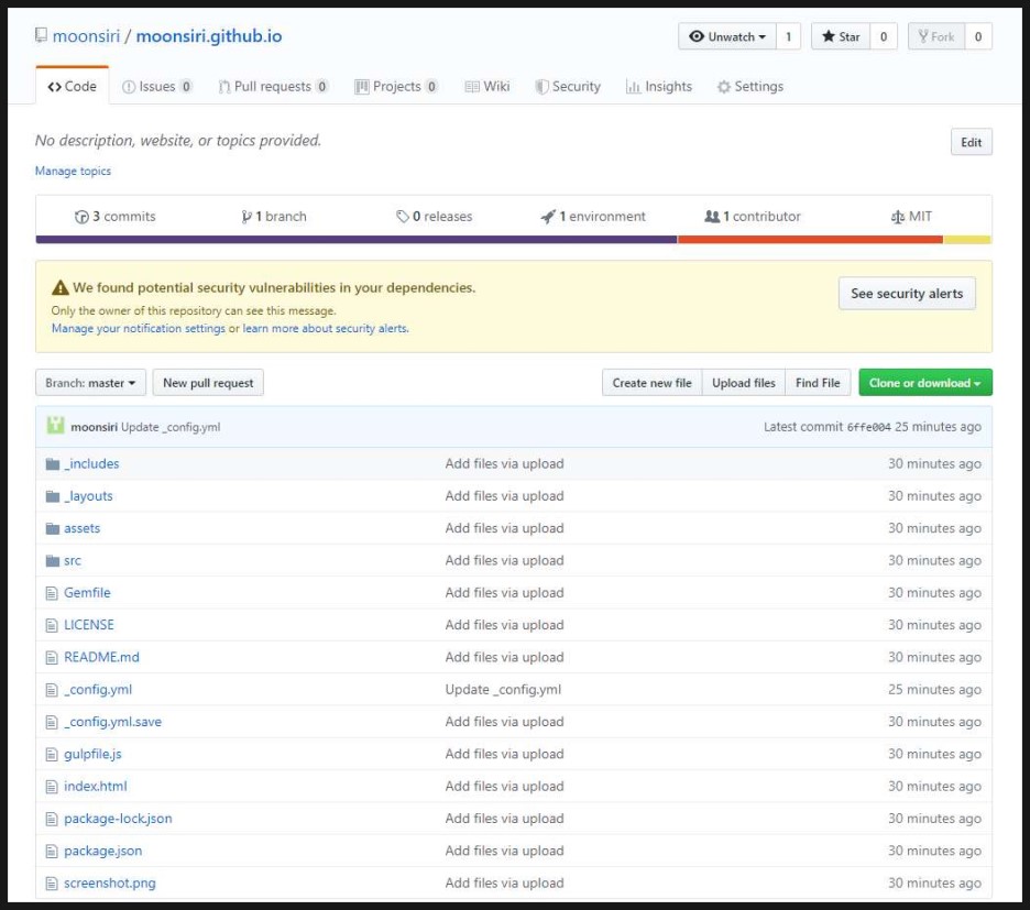 8. 파일이 업로드되면 _config.yml 파일 등 정보를 수정하면됩니다. (바로 적용되지 않습는다.)