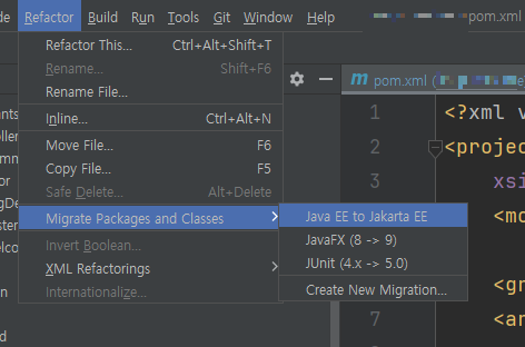 Refactor > Migrate Packages and Classes > Java EE to Jakarta EE