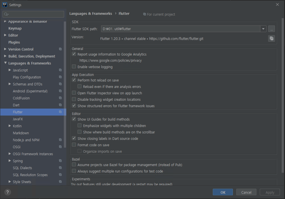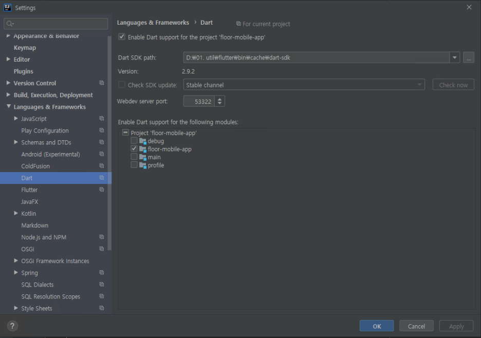 dart SDK 설치 후 IDE를 재시동하면 자동으로 설정이 완료됩니다.