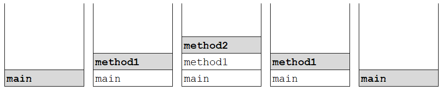 예외가 발생했을 때, 3개의 메서드 모두(main, method1, method2) 호출 스택에 있었으며, 예외가 발생한 곳은 제일 윗줄에 있는 method2()라는 것과 main메서드가 method1()를, 그리고 method1()은 method2()를 호출했다는 것을 알 수 있습니다.