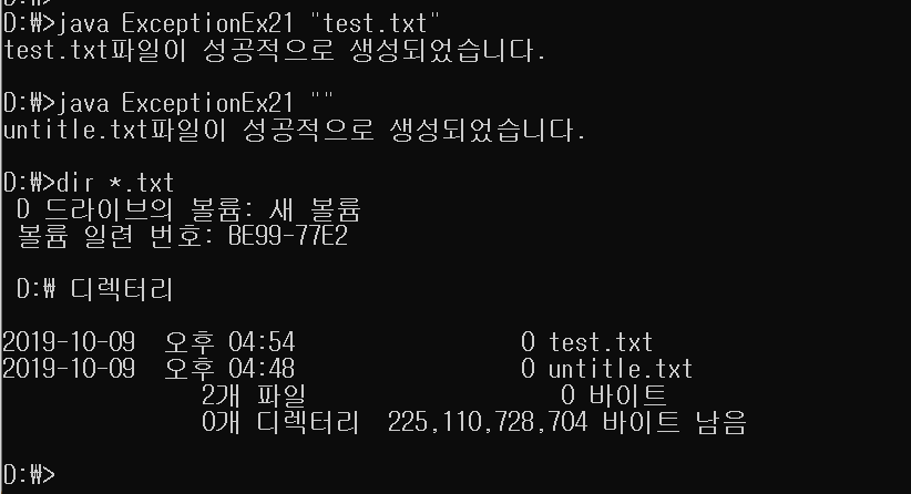 // 예외가 발생한 createFile메서드 자체 내에서 예외를 처리한다.
