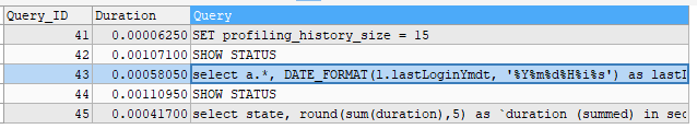 SET profiling = 1;
