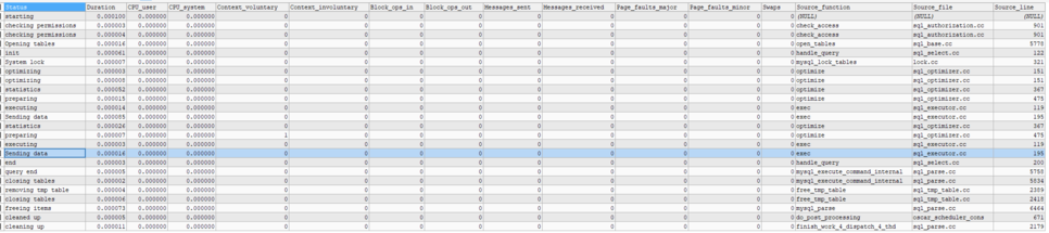 SHOW PROFILE ALL FOR QUERY 43; -- ALL 말고도 CPU/IPC/SOURCE/SWAPS 등으로 조회 가능