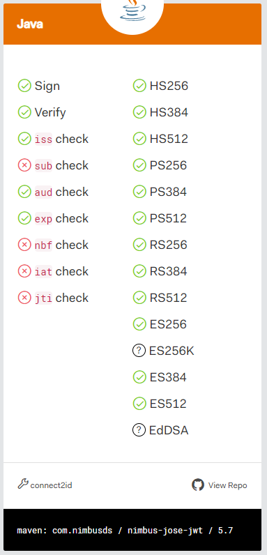 - Java JWT (: JSON Web Token for Java and Andriod)는 JWT , JWS , JWE , JWK 및 JWA RFC 사양 및 Apache 2.0 라이선스 조건에 따른 오픈 소스에 기반한 순수 Java 구현입니다.