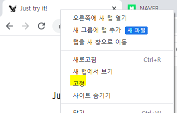 탭 고정 기능을 사용하면 고정한 탭은 브라우저를 닫아도 새 창을 띄울 때마다 고정되어 있습니다.