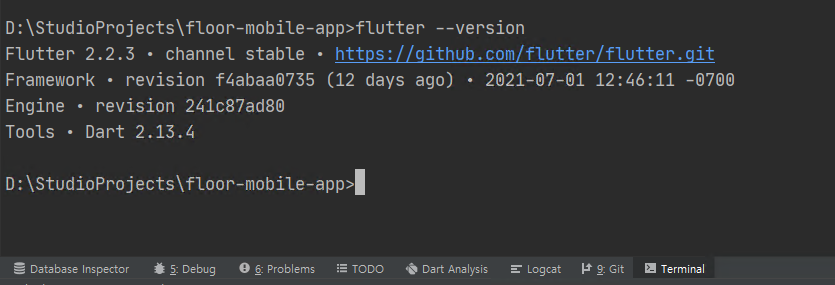 콘솔 창에서 flutter --version 명령어로 버전을 확인합니다.